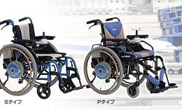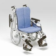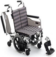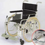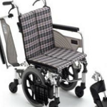 アルミサポートのハネ上げや、フットサポートスイングアウトなどの機能が付いた自走用車イスです。